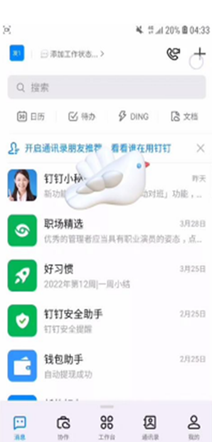User need to use Dingding App to scan the QR code, click on the top corner [+] to get scan option.