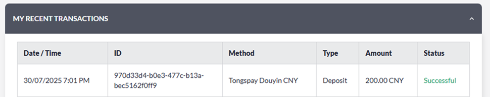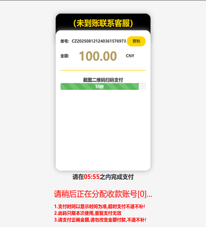 - amount of payment must same with requested, please remember to tick the[无需领取即可到账] so the fund will auto credit to user account