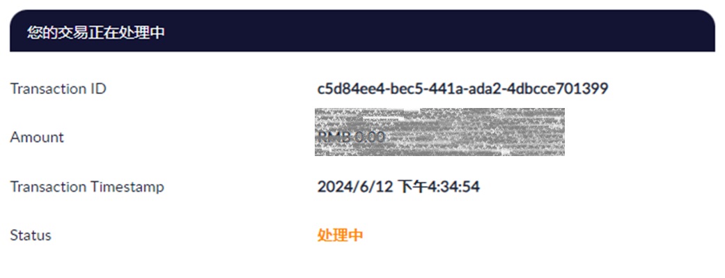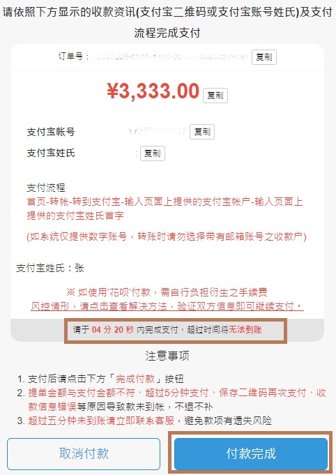 - Follow on-screen instructions, complete within time limit and click 【付款完成】