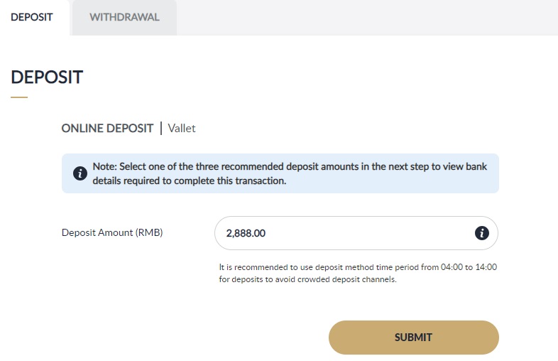Please take note, all deposit details only can use once, do not keep the deposit details for next payment, its will caused the loss of fund.