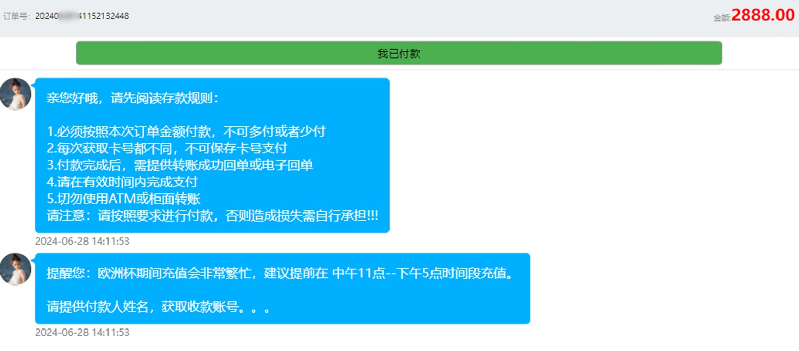 - After verification, provide the order number information, the payee provides the corresponding payment method, and the member can pay as required