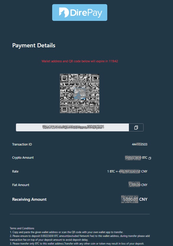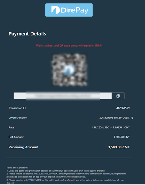 Note: Please transfer according to the "Transfer Amount" specified on this page to avoid transaction failure. After the transfer is successful, the amount will be transfer to your wallet according to the amount of your original submitted, and no fees will be deducted.
