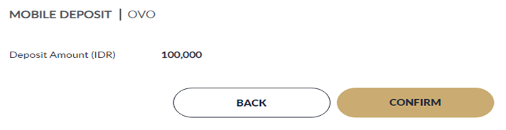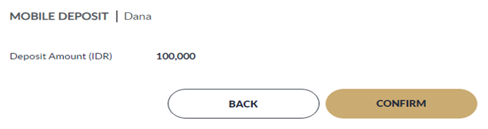 - Click CONFIRM to be re-directed to a new page or click BACK to modify your deposit amount.