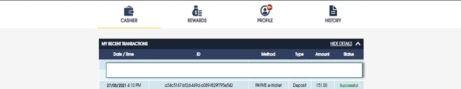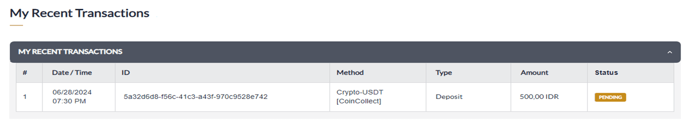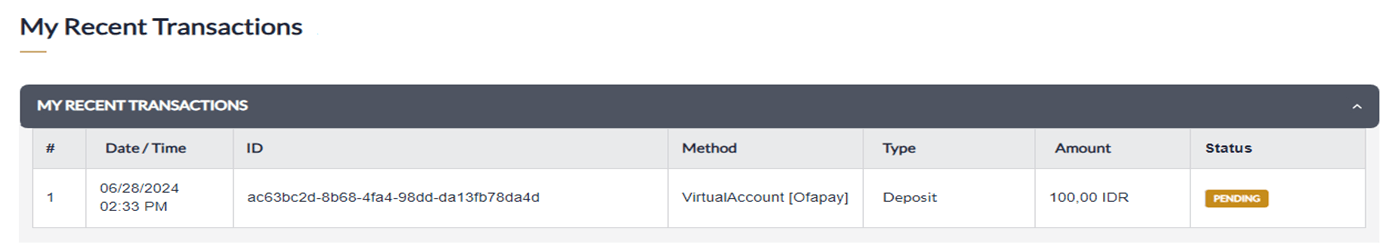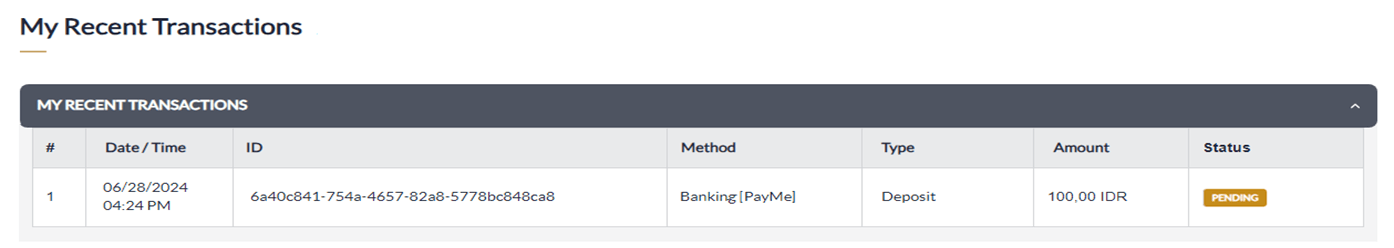 - Find your latest deposit record in "MY RECENT TRANSACTIONS".