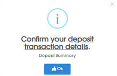 - Submit deposit amount, choose preferred bank and confirm the deposit