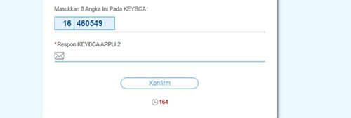 - Input the auto-generated 8-digit number into your KEYBCA token and respond KEYBCA APPLI 2. Input the challenge number shown then click Konfirm
