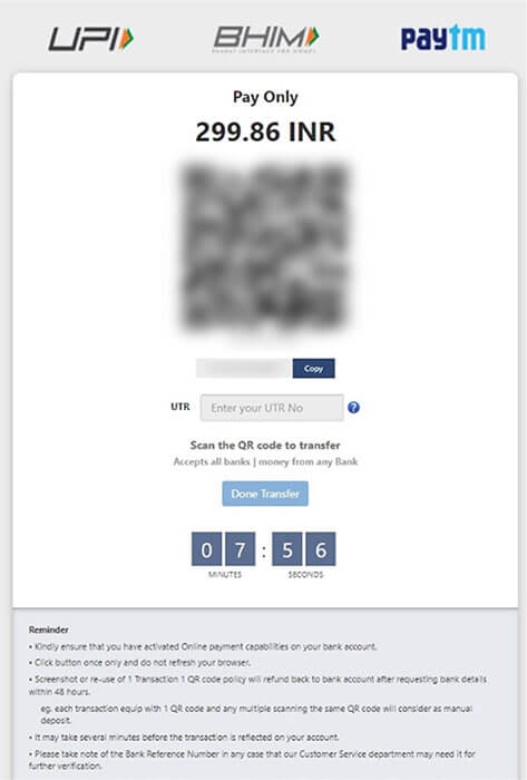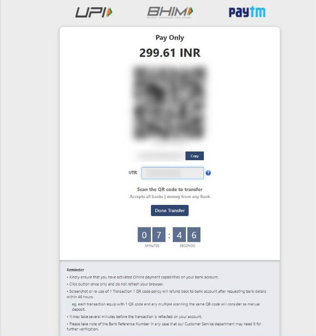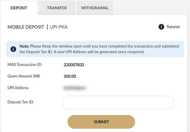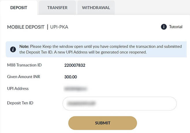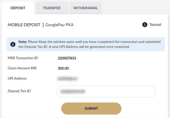 Note : UPI UTR is the Transaction ID for submitting deposit later