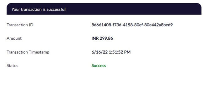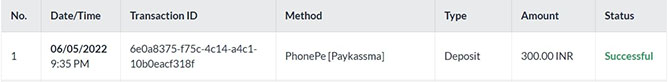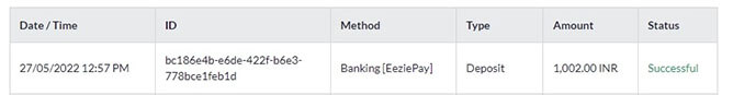 Once payment successful message appears, status of transaction will be automatically reflected in the Deposit Page.