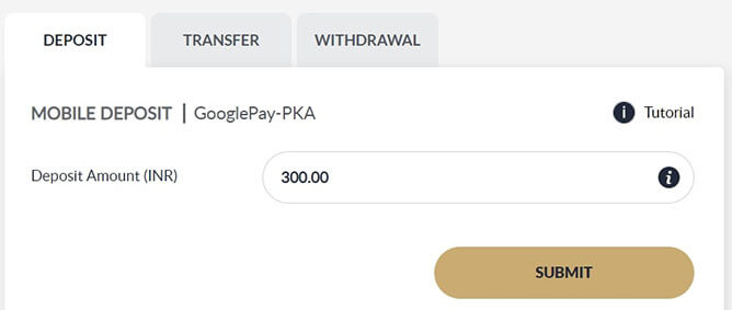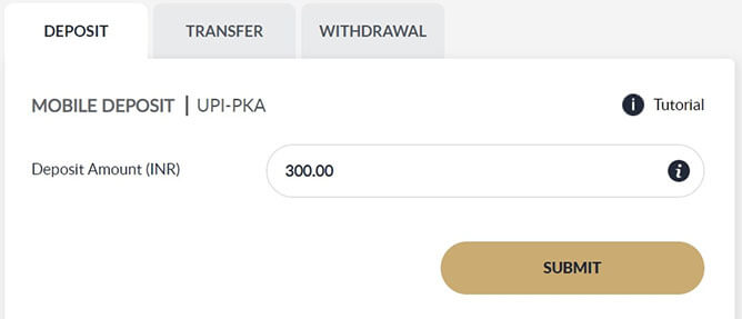 Input the amount and click SUBMIT