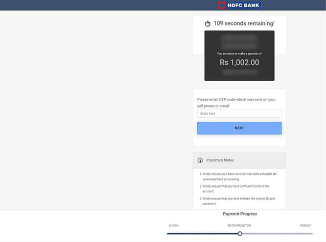 Select the payment bank and click NEXT