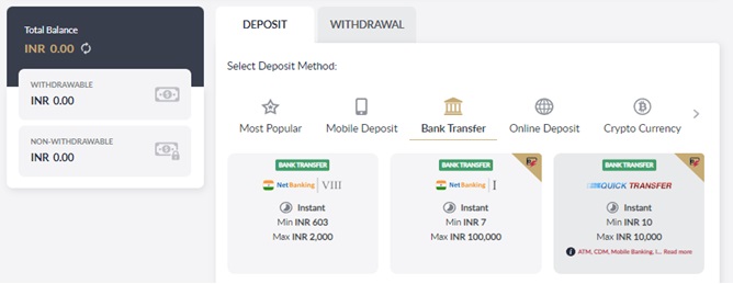- Click DEPOSIT button