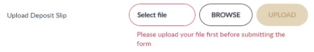 - Upload the bank receipt and click UPLOAD
