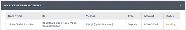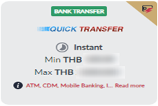- Select deposit method "Bank Transfer" and choose "Quick Transfer"