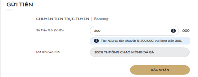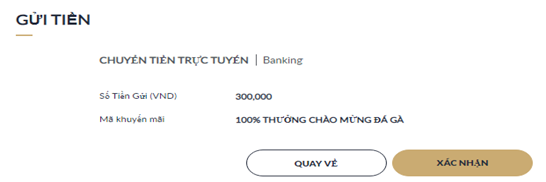 Một lần nữa, nhấp "Xác Nhận" để xác nhận thông tin gửi tiền.