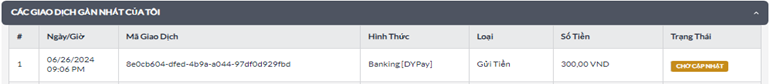 Vui lòng kiểm tra trạng thái và lịch sử gửi tiền của Quý Khách tại "CÁC GIAO DỊCH GẦN NHẤT CỦA TÔI"