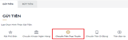 Nhấp chọn vào "GỬI TIỀN".