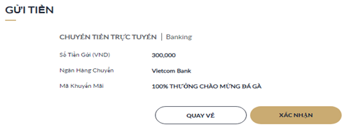 Một lần nữa, nhấp "Xác Nhận" để xác nhận thông tin gửi tiền.