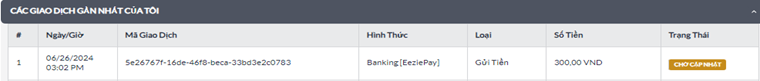 Vui lòng kiểm tra trạng thái và lịch sử gửi tiền của Quý Khách tại "CÁC GIAO DỊCH GẦN NHẤT CỦA TÔI"