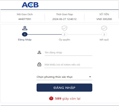 Bước tiếp theo vui lòng đăng nhập vào ngân hàng trực tuyến để thực hiện chuyển khoản. Lưu ý: Quý Khách cần nhập mã OTP do ngân hàng cung cấp qua tin nhắn để hoàn tất xác nhận giao dịch.