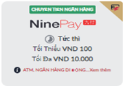 - Chọn phương thức "NinePay" tại Chuyển khoản ngân hàng.