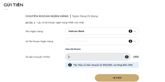 - Thông tin ngân hàng nhận tiền của M88 sẽ hiển thị, tiến hành gửi tiền từ tài khoản ngân hàng vào tài khoản M88 sau đó nhấp "Xác Nhận"