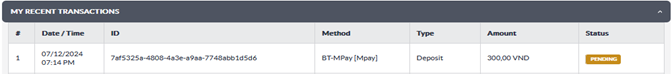 - Tại mục "CÁC GIAO DỊCH GẦN NHẤT CỦA TÔI", Quý Khách sẽ thấy thông tin giao dịch chờ cập nhật.