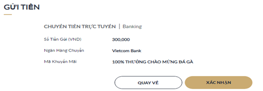 Một lần nữa, nhấp "Xác Nhận" để xác nhận thông tin gửi tiền.