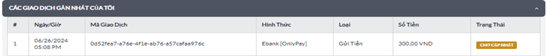 Vui lòng kiểm tra trạng thái và lịch sử gửi tiền của Quý Khách tại "CÁC GIAO DỊCH GẦN NHẤT CỦA TÔI"