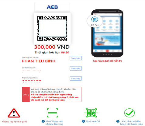 Đăng nhập vào Ứng Dụng Ngân Hàng Di Động và tiến hành quét mã QR. Lưu ý: vui lòng điền mã thấy tại mục "Nội dung điền:…" vào phần Nội Dung Chuyển Tiền trên phiếu gửi tiền của Quý Khách. Điền mã OTP để xác nhận giao dịch