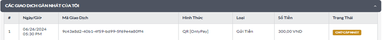 Vui lòng kiểm tra trạng thái và lịch sử gửi tiền của Quý Khách tại "CÁC GIAO DỊCH GẦN NHẤT CỦA TÔI"