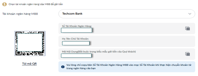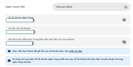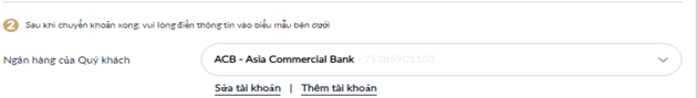 Thông tin ngân hàng nhận sẽ hiện ra bên dưới.