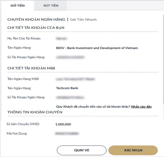 Xem lại thông tin gửi tiền và nhấp "XÁC NHẬN"