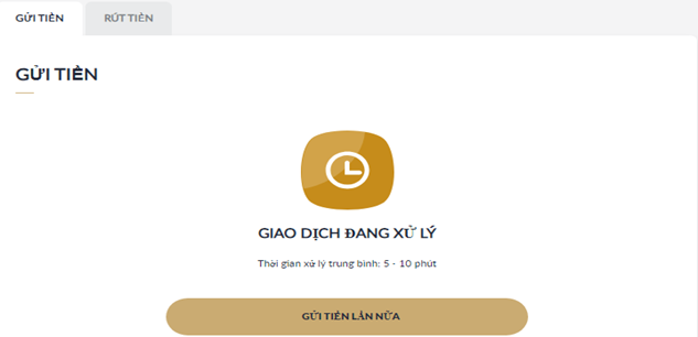 Giao dịch đã được ghi nhận và đang chờ xử lý trong vòng 5 - 10 phút.