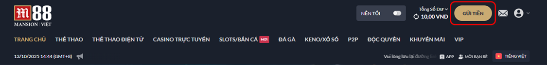 - Nhấp chọn vào "GỬI TIỀN".