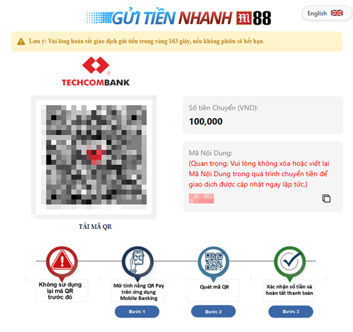 Mỗi Mã QR chỉ sử dụng 1 lần, vui lòng thao tác lại nếu muốn gửi thêm tiền.