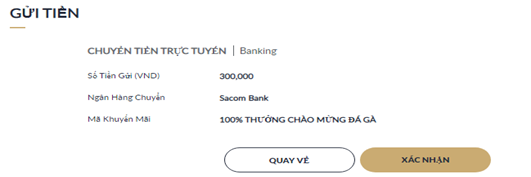 Một lần nữa, nhấp "Xác Nhận" để xác nhận thông tin gửi tiền.