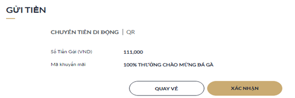 Một lần nữa, nhấp "Xác Nhận" để xác nhận thông tin gửi tiền.