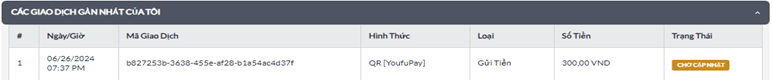Vui lòng kiểm tra trạng thái và lịch sử gửi tiền của Quý Khách tại "CÁC GIAO DỊCH GẦN NHẤT CỦA TÔI"
