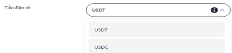 Chọn loại Tiền điện tử muốn rút USDT hoặc USDC