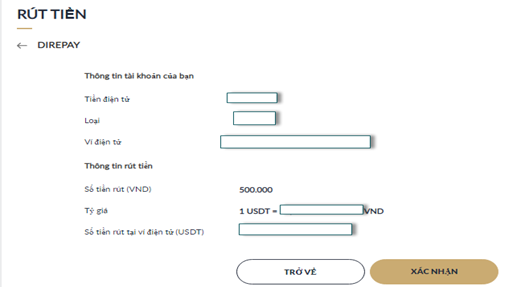 Một lần nữa, nhấp "Xác Nhận" để xác nhận thông tin Rút Tiền.