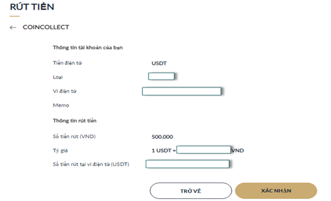 Chọn phương thức "Coin Collect" tại Rút Tiền.